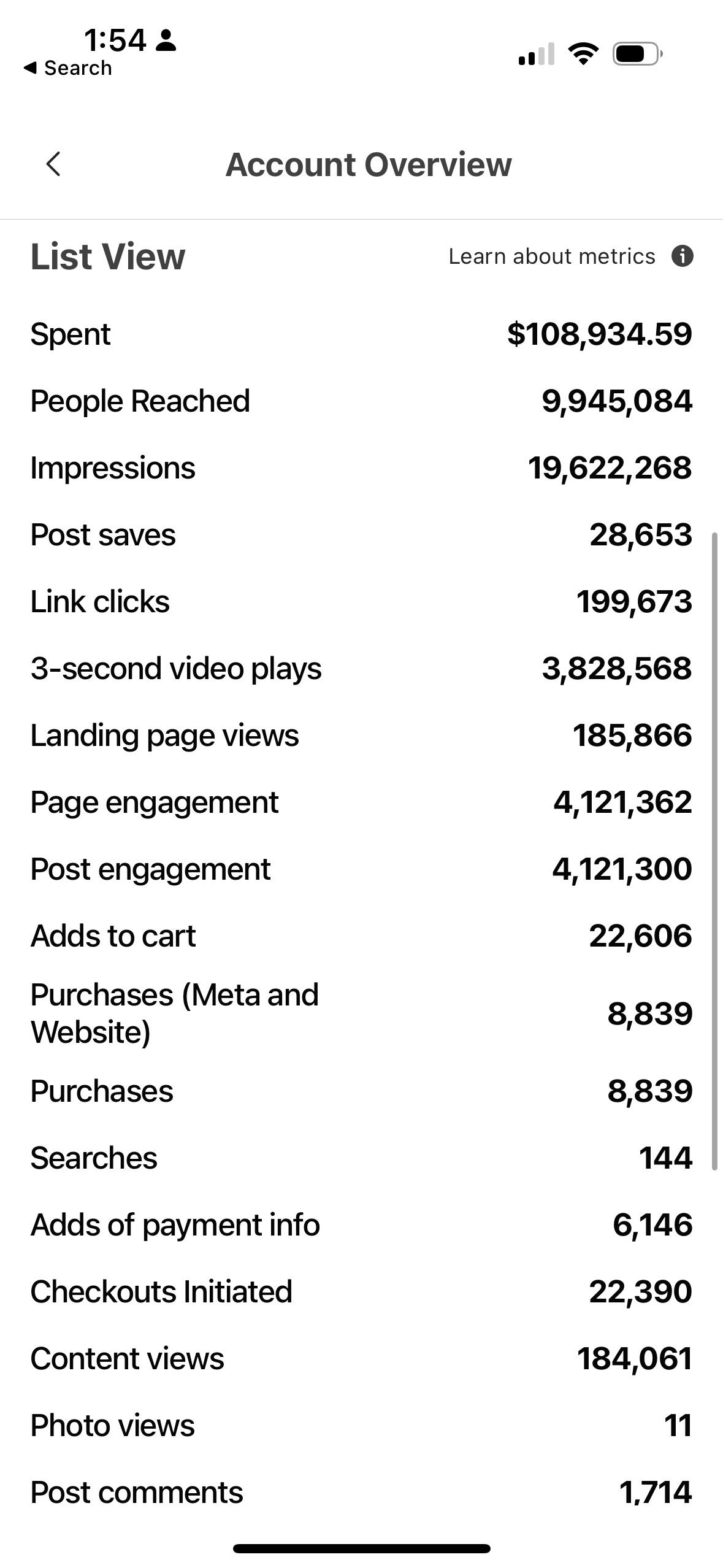 My pièce de résistance: a headphone brand that replicated Apple AirPods at a better price point and in eight colors. I scaled it with Facebook ads to $480,000+ in revenue at about a 27% margin, selling ~11,000 pairs in six months before the account was banned.